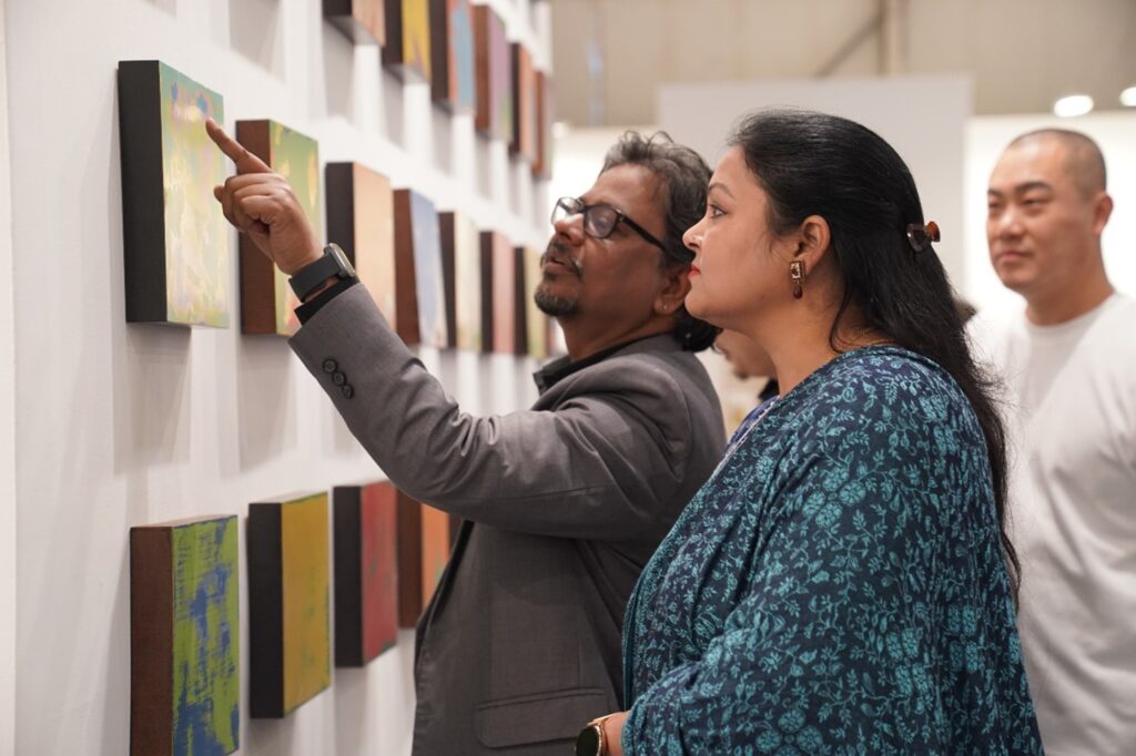 Director General of National Gallery of Modern Art, Dr. Sanjeev Kishor Goutam, was the chief guest at KCCI exhibition booth, appreciated the art work by Korean artists and interacted with artist Kim Deok-han