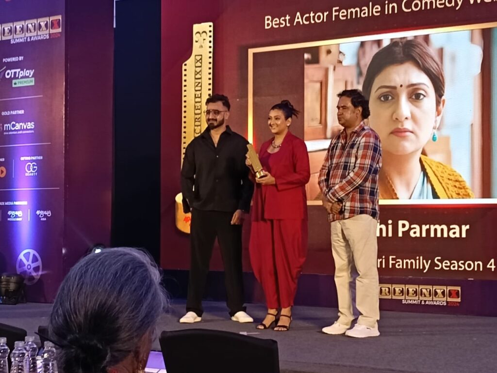 The stage lit up again as Sonu Tyagi presented the Best Actor Female in Comedy Web Originals award to Juhi Parmar for her outstanding performance in Heeramandi. Parmar’s exceptional ability to blend humor with emotional depth in her character has earned her widespread appreciation, making her a standout in the comedy genre. Tyagi highlighted Parmar’s innate talent to connect with viewers while delivering moments of laughter and introspection.